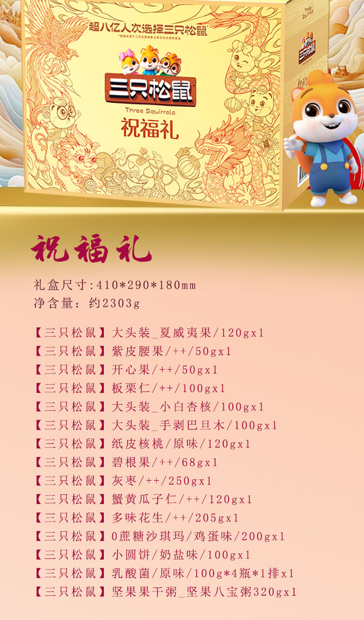 【三只松鼠】祝福礼2303g 零食坚果礼盒年货礼盒