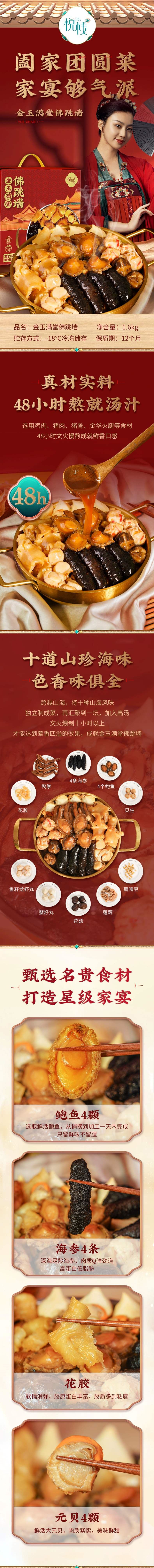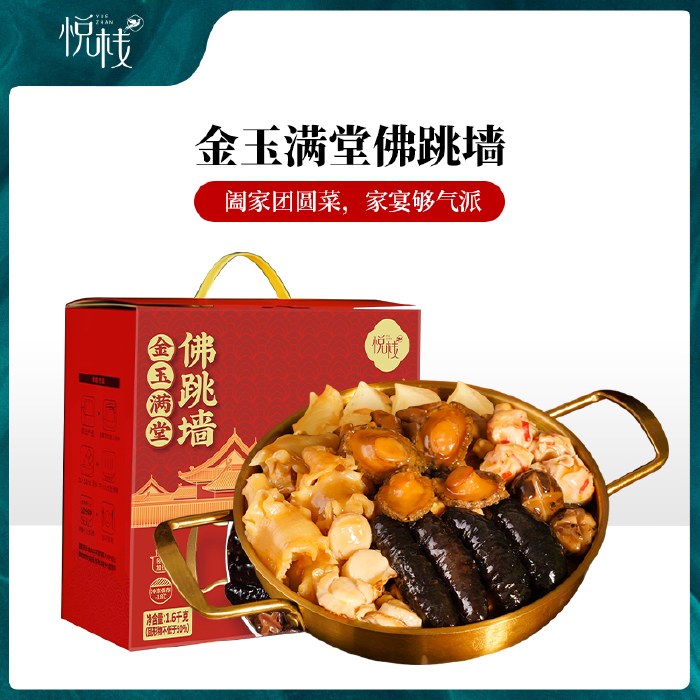 悦栈金玉满堂佛跳墙1600g 加热即食海鲜鲍鱼花胶海参高汤大盆菜
