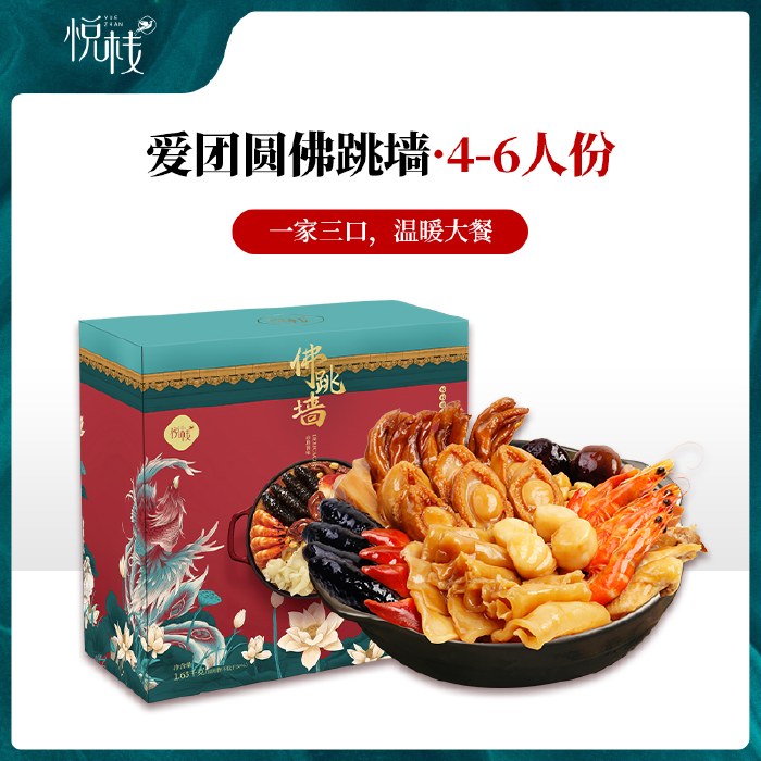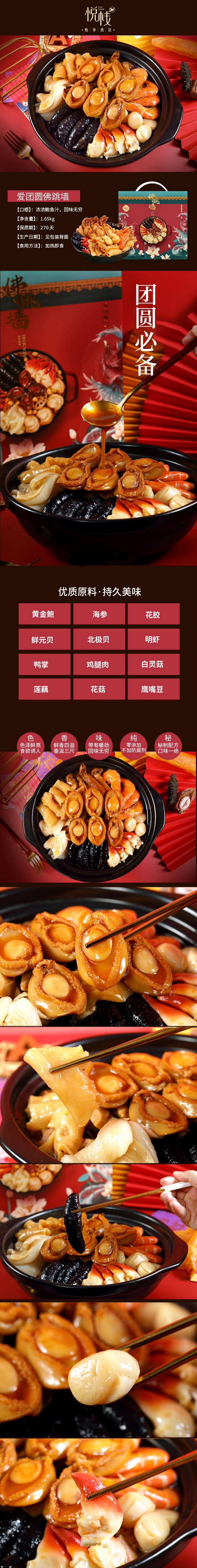 悦栈爱团圆佛跳墙1650g 加热即食海鲜鲍鱼花胶海参高汤大盆菜