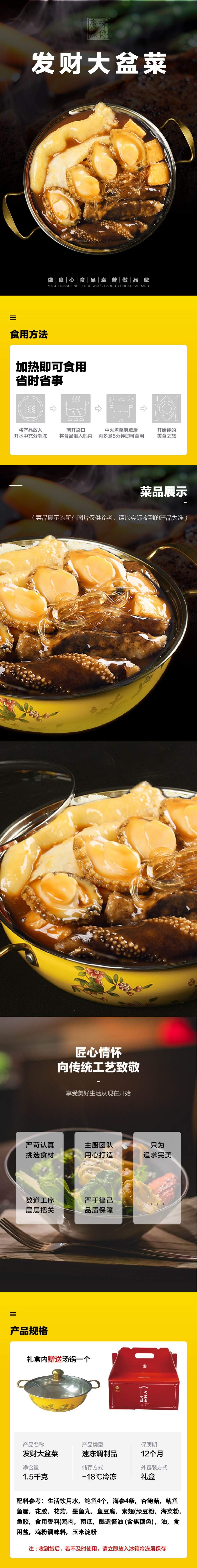 佬廣食品发财大盆菜礼盒1500g 加热即食 鲍鱼海参海鲜半成品预制菜佛跳墙礼盒装