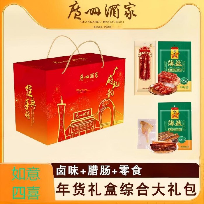 【广州酒家】如意四喜710g 腊肉腊肠腊鸭腿礼盒装腊味组合