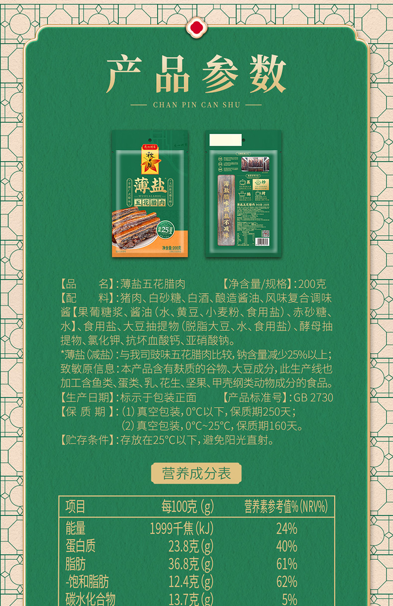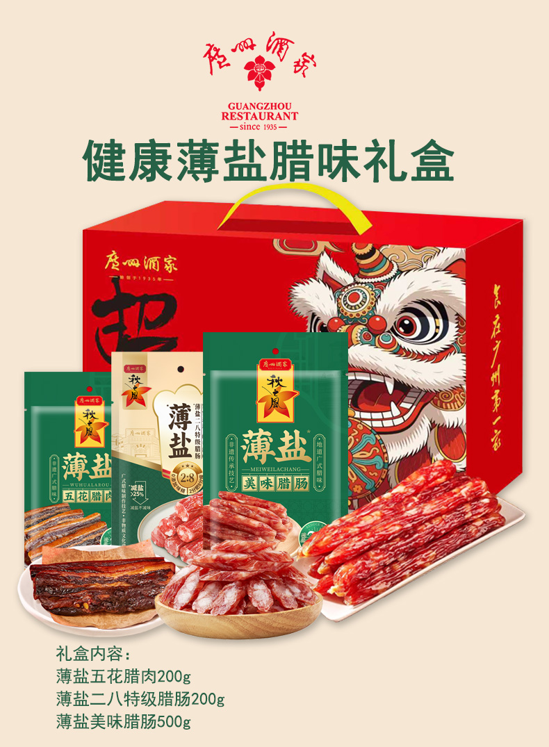 【广州酒家】广府经典腊味猪肉脯礼盒770g 腊肉腊肠礼盒装腊味组合