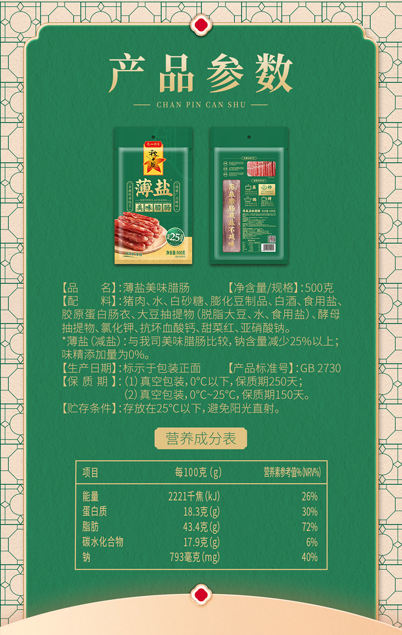 500g沧洲金福腊肠