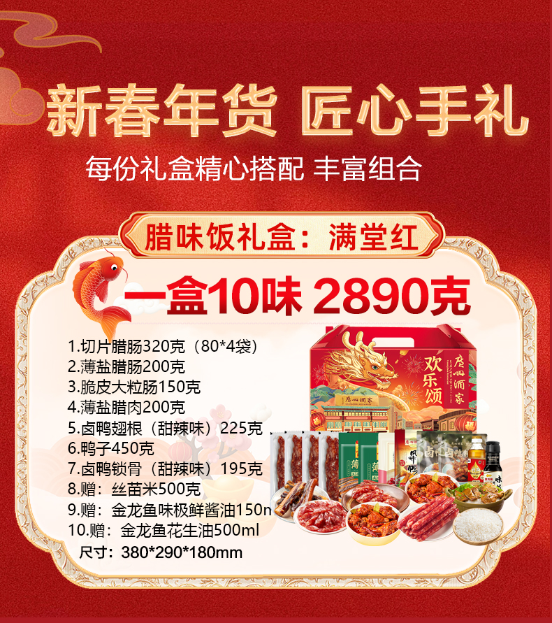广州酒家腊味饭礼盒 满堂红2890g 腊肉腊肠油米调味品礼盒装卤味腊味组合