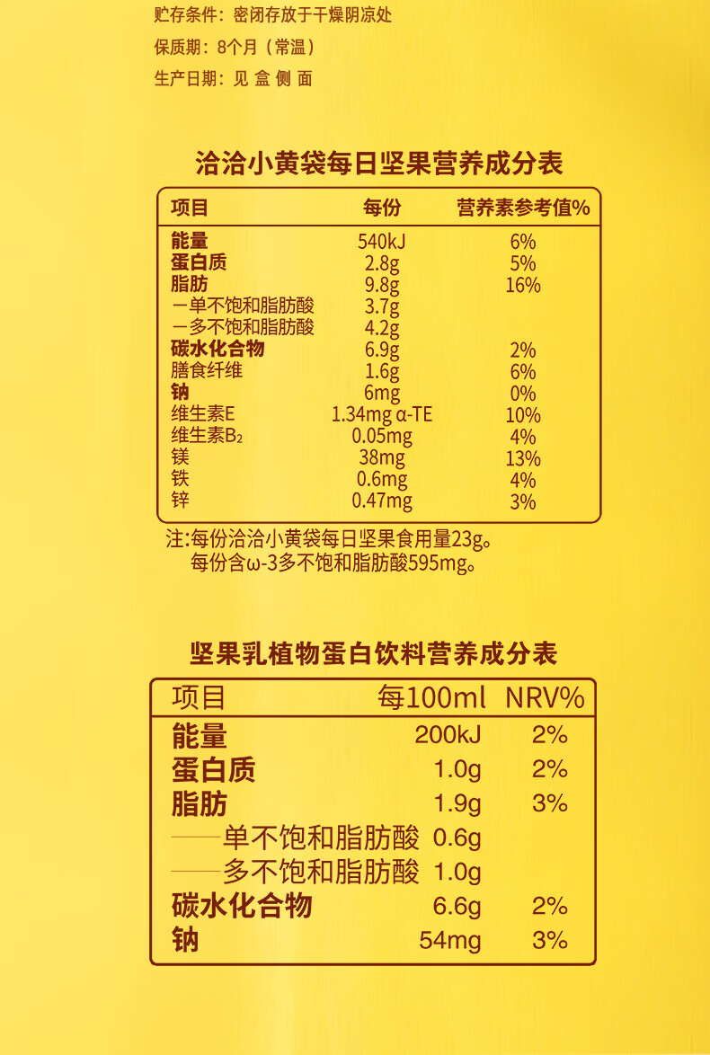 洽洽小黄袋每日坚果23g*10袋(内含480ml)坚果乳饮料零食坚果礼盒年货礼盒