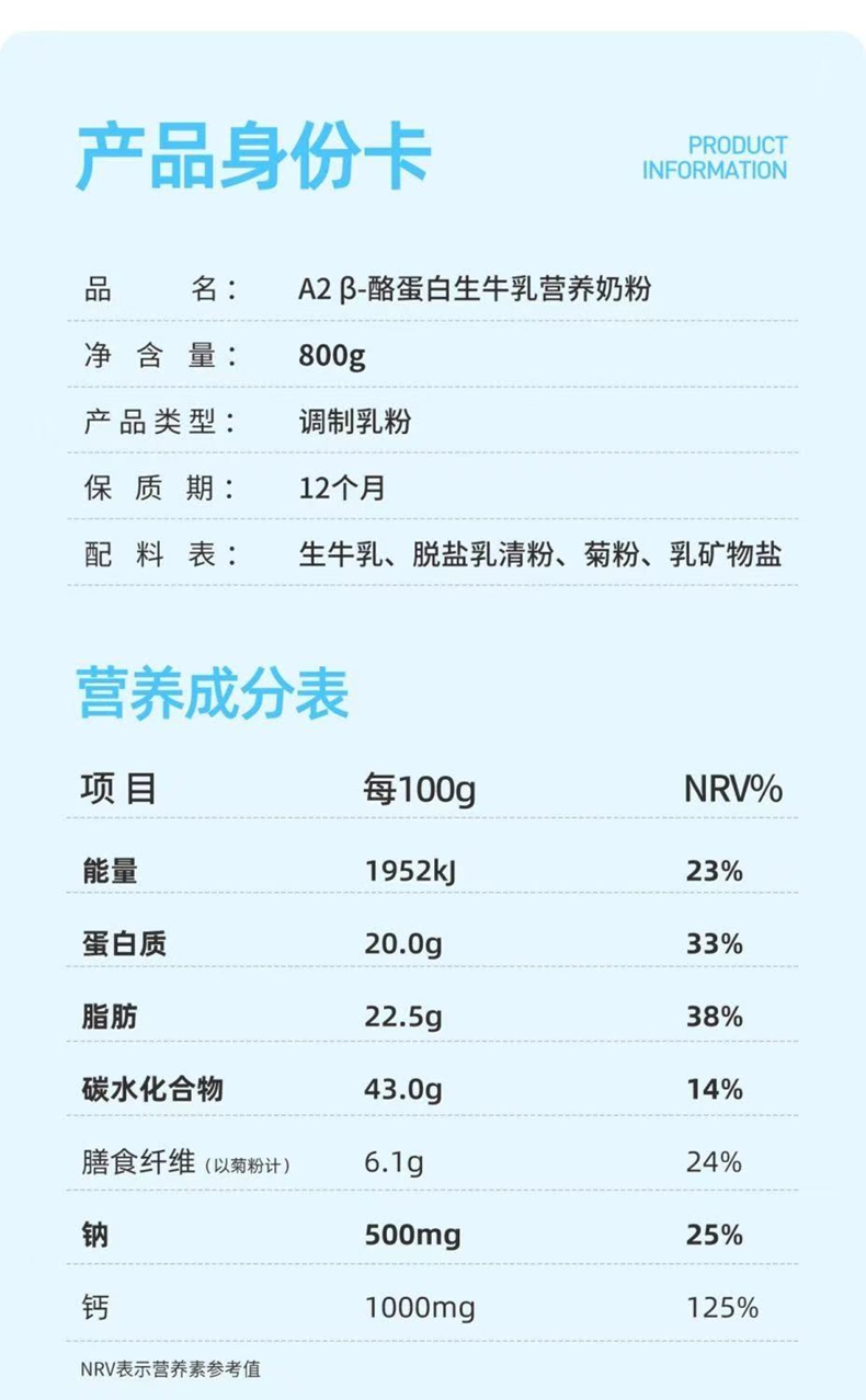 认养一头牛A2β-酪蛋白生牛乳营养奶粉800g罐装