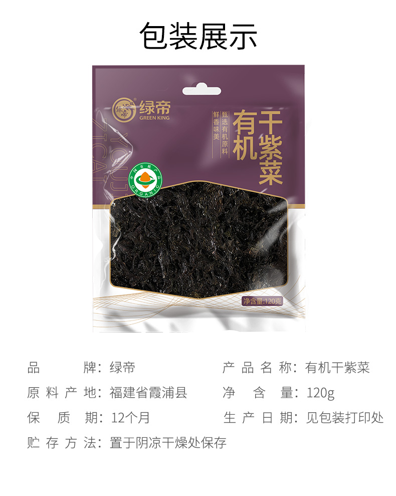 绿帝有机紫菜120g 有机干紫菜干货
