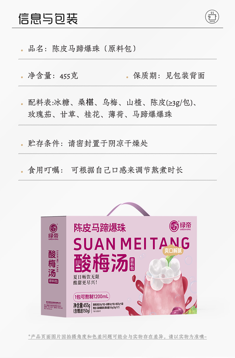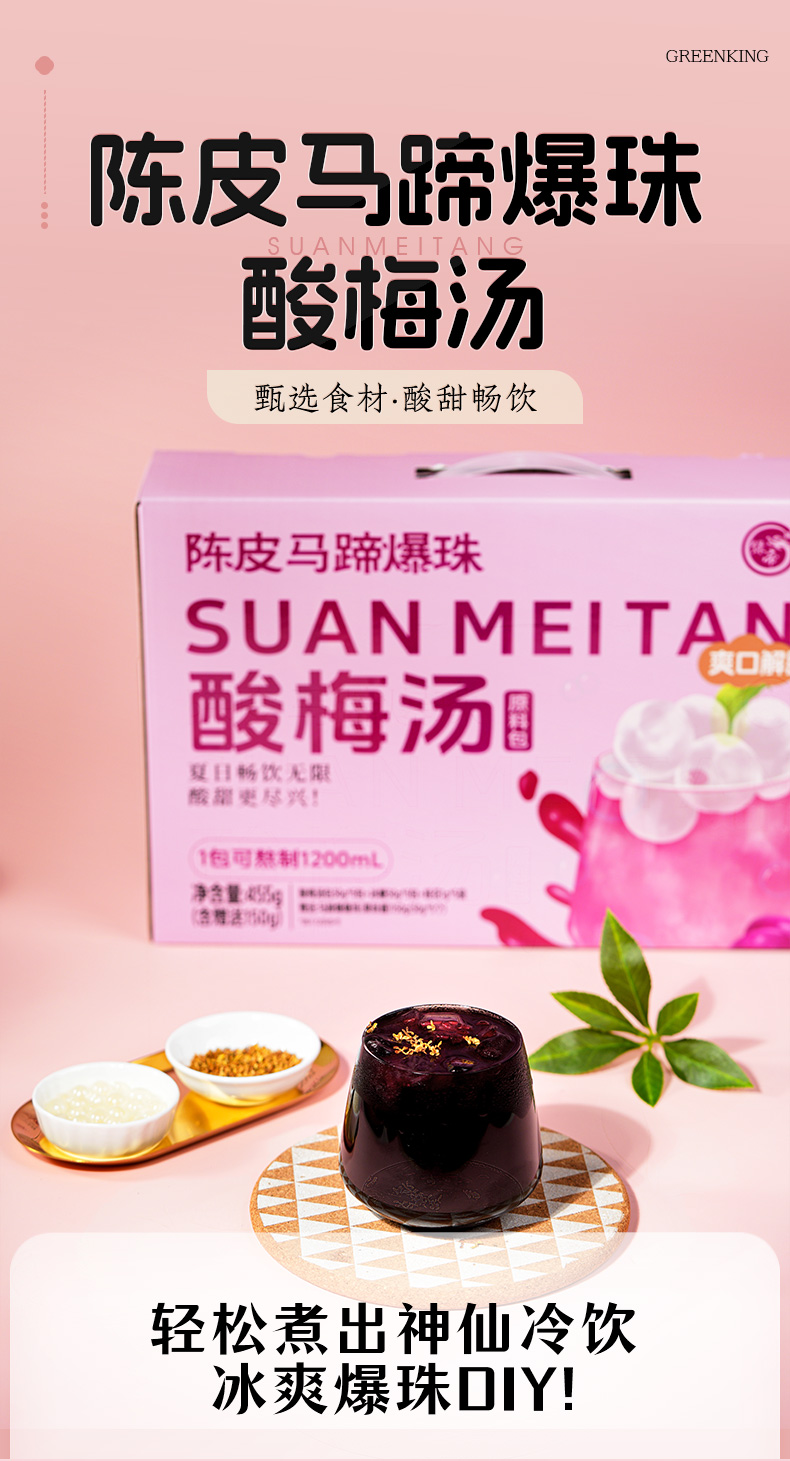 绿帝陈皮马蹄爆珠酸梅汤原料包礼盒455g