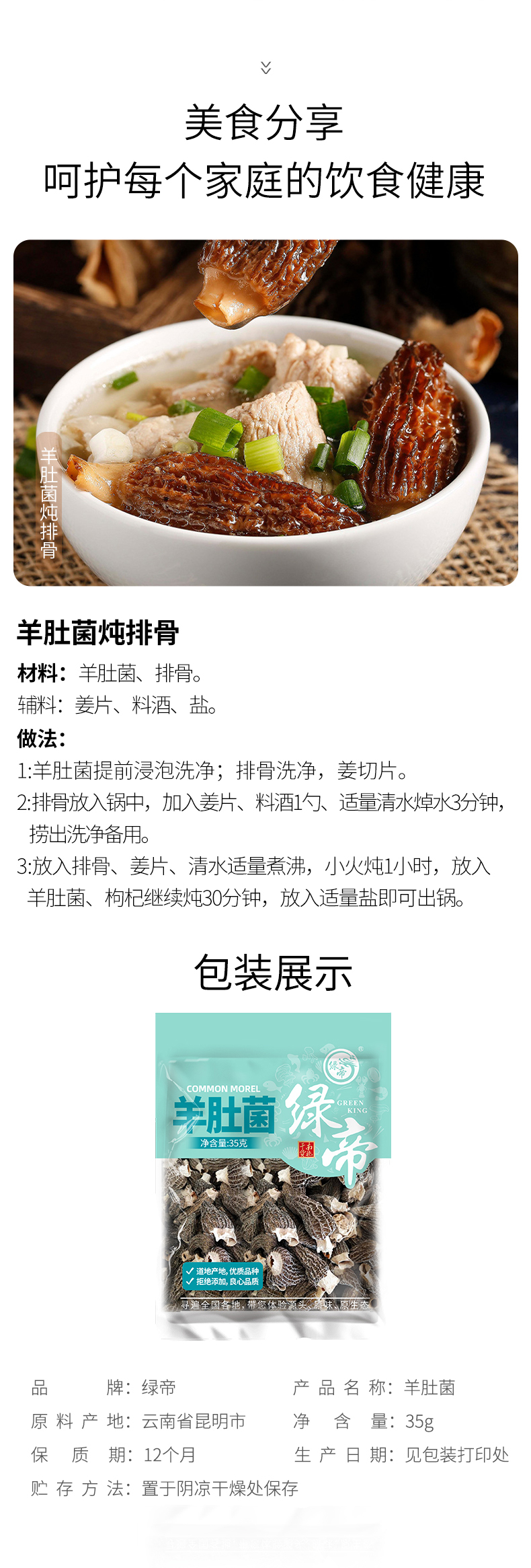 绿帝羊肚菌35g 菌菇干货