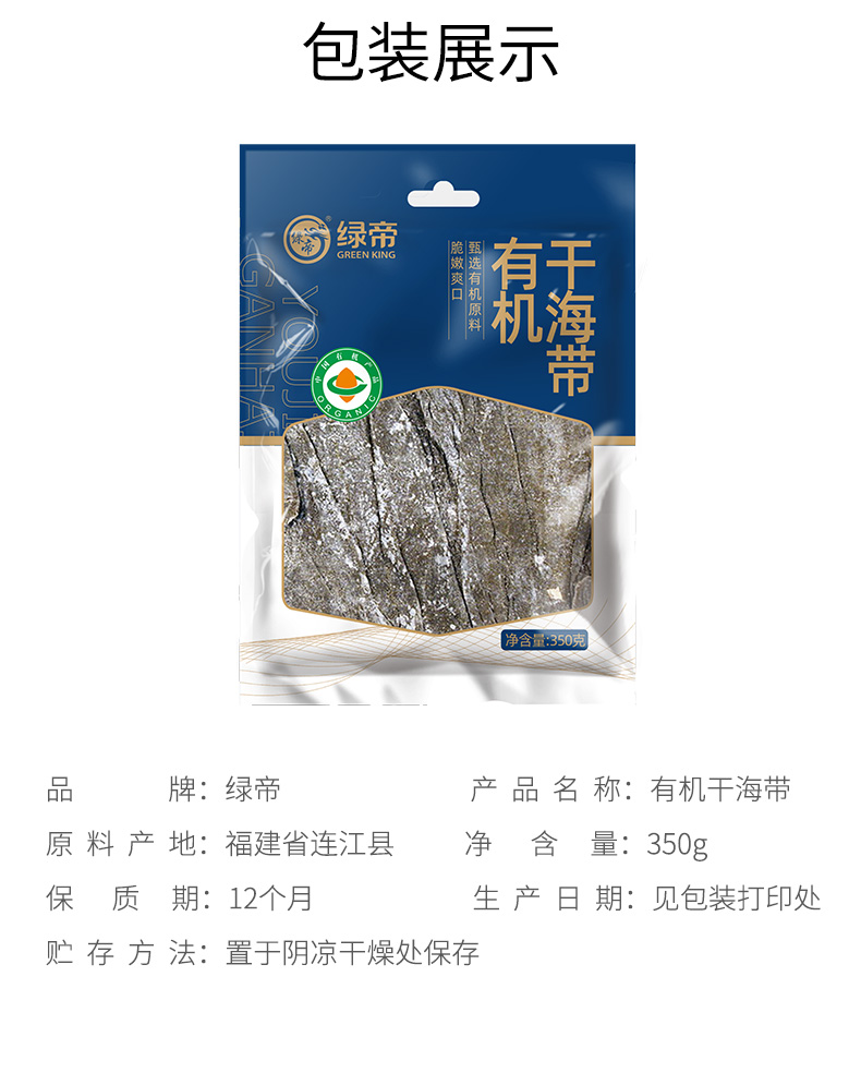 绿帝有机干海带350g 干货