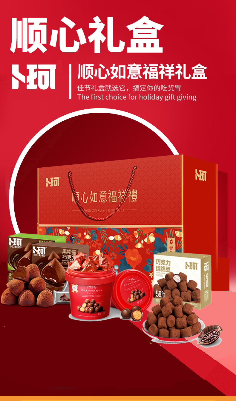 卜珂 顺心如意巧克力福气满满装 726克 零食礼盒年货礼盒