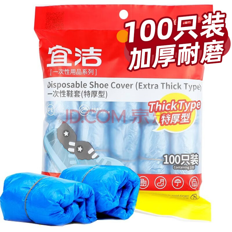 宜洁(yekee) 一次性鞋套加厚100只装 室内机房厂房样板间防水防滑脚套Y-9664