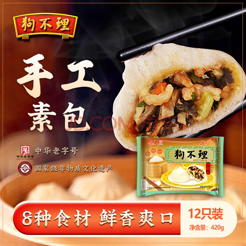 狗不理 手工素包 420g 12个 包子 含虾米 早餐选择春节也送货