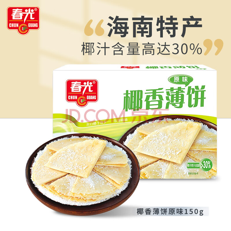 春光食品 海南特产 椰香薄饼150g 薄脆椰子饼干 休闲零食 独立小包装