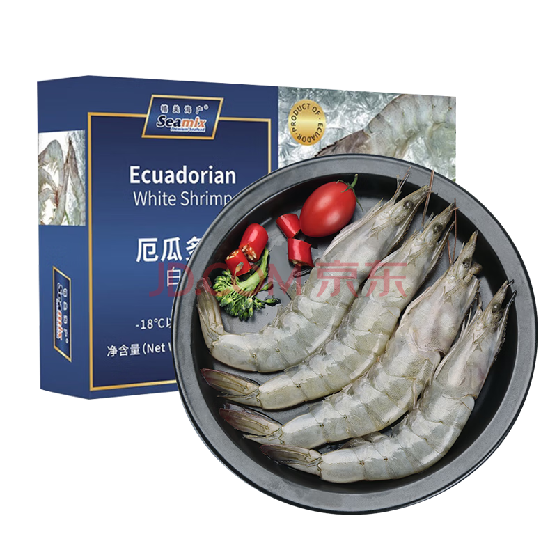 禧美海产厄瓜多尔白虾 无冰净重3.6斤/盒(加大号)75-90只 盐冻 烧烤 海鲜
