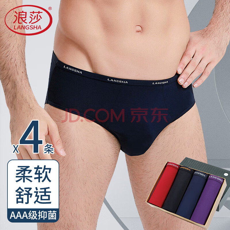 浪莎三角内裤男抑菌舒适透气U凸囊袋大码宽松中腰裤头 180/XXL