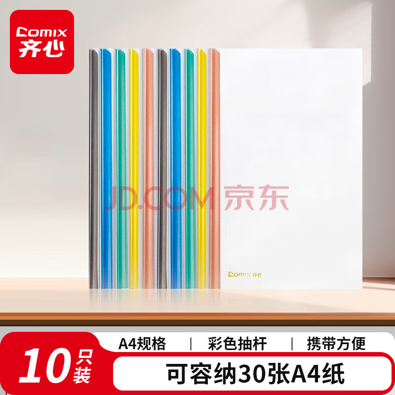齐心(COMIX)彩色水滴抽杆夹10只装A4/7mm/拉杆夹抽杆文件夹透明拉杆文件夹 办公文具EA85