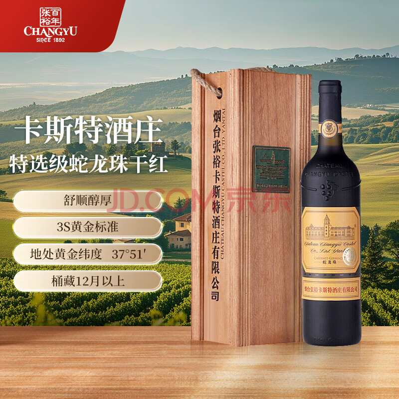 张裕(CHANGYU)卡斯特酒庄蛇龙珠干红葡萄酒750ml单瓶红酒礼盒商务宴请