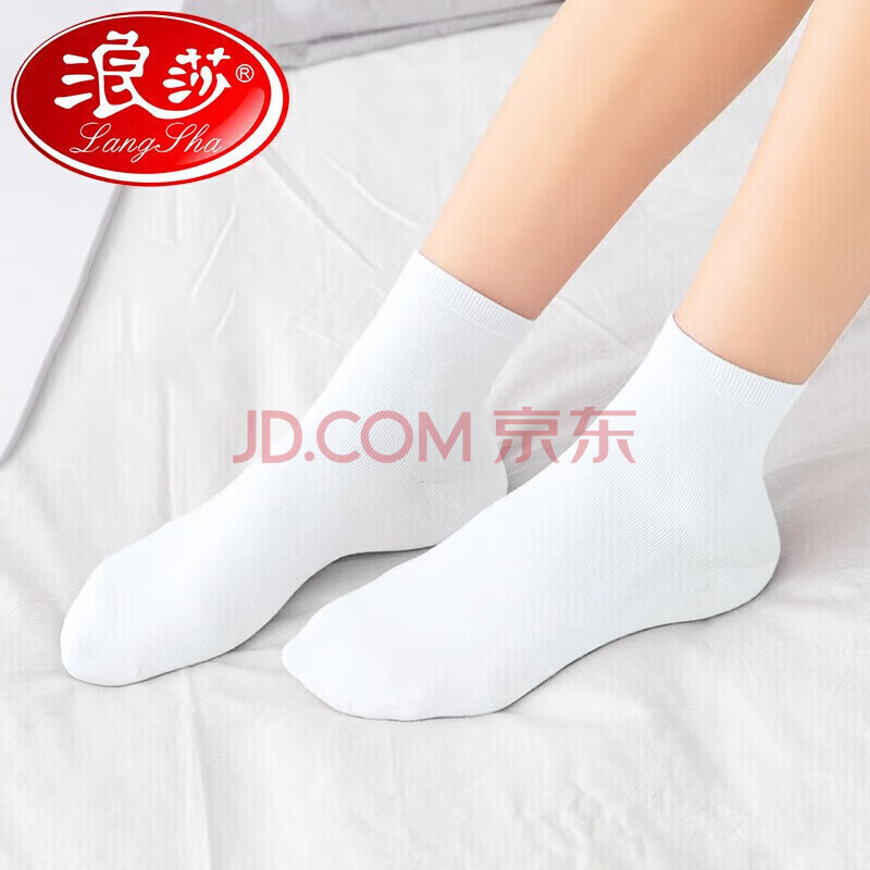浪莎纯白色纯棉袜子女中筒袜学生棉袜全棉长袜舒适白色女袜6双装