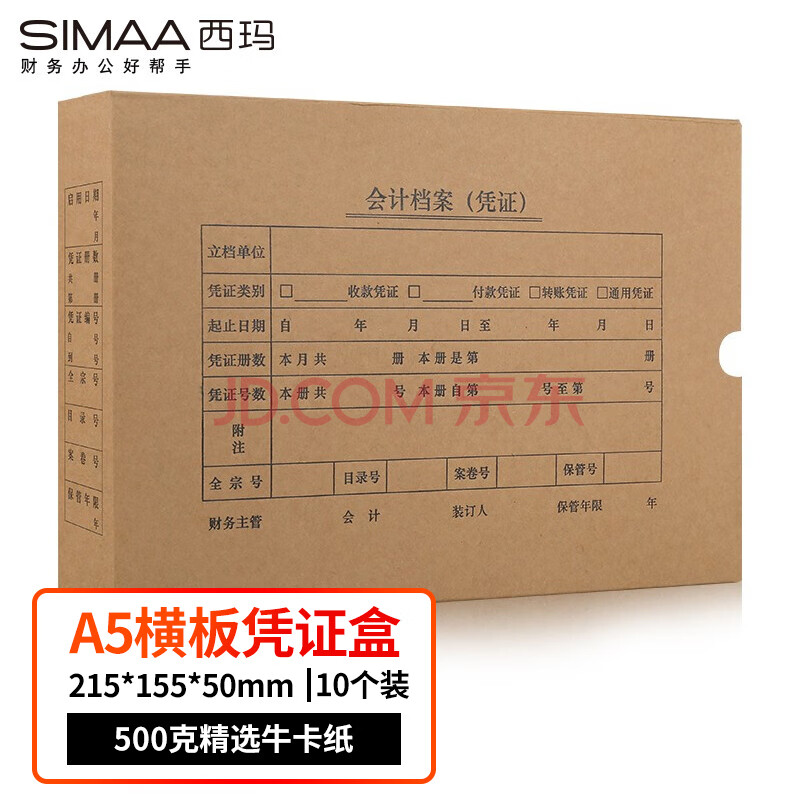 西玛(SIMAA)A5凭证装订盒HZ331-10 10个/包 215*155*50mm A4的一半 财务会计记账凭证封面纸档案装订盒子