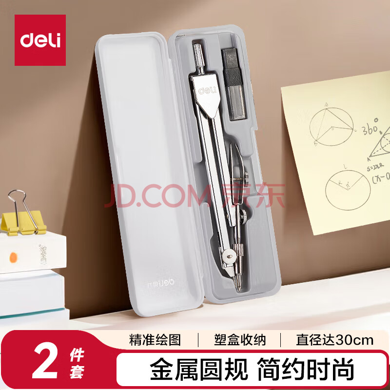 得力(deli)金属圆规工程考试专用考研高考中考国际标准绘图仪器(一件套/无色)开学文具