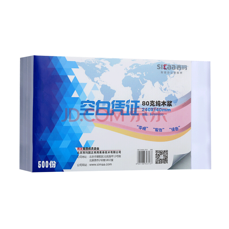 西玛【超级爆款】80g空白凭证纸240*140mm 适用于用友金蝶财务软件记账凭证打印纸 500张/包