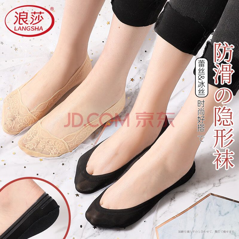 浪莎袜子女蕾丝船袜隐形丝袜短浅口硅胶防滑袜子 蕾丝款肤灰粉各2双