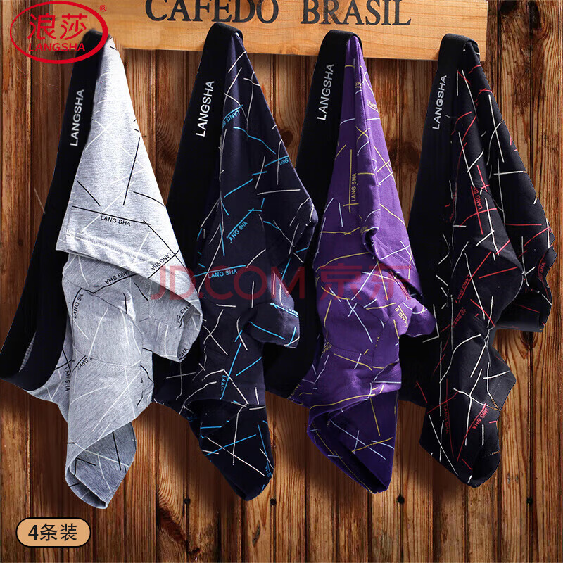 浪莎男士内裤男弹力棉透气抑菌平角裤衩中腰大码四角裤头 4条经典款
