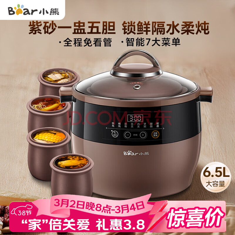 小熊(Bear)电炖锅 电炖盅 隔水炖锅 煲汤锅炖汤锅 电砂锅 紫砂锅 煮粥锅5-6个人大容量可预约定时B45Z1 6.5L