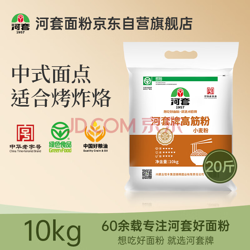 河套 高筋粉20斤 中华老字号面包面粉披萨粉馒头通用面粉恒丰面粉