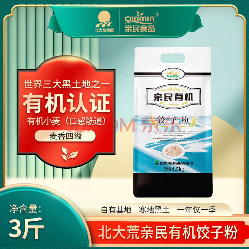 亲民食品北大荒有机饺子粉3斤 饺子馄饨专用面粉中高筋力皮薄耐煮