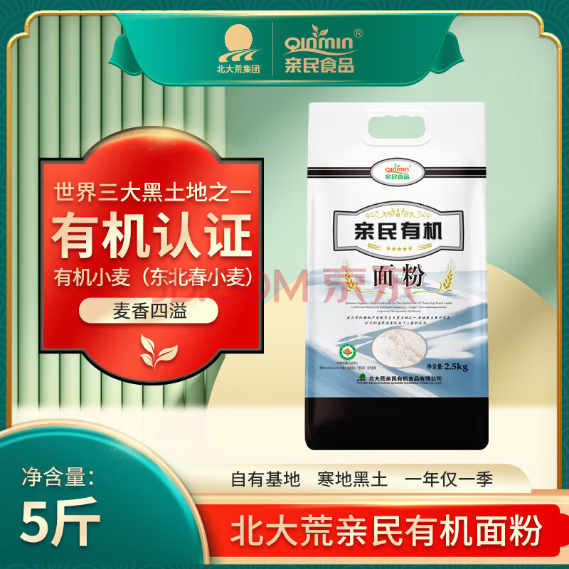 亲民食品北大荒有机面粉5斤 中筋多用途包子馒头面条