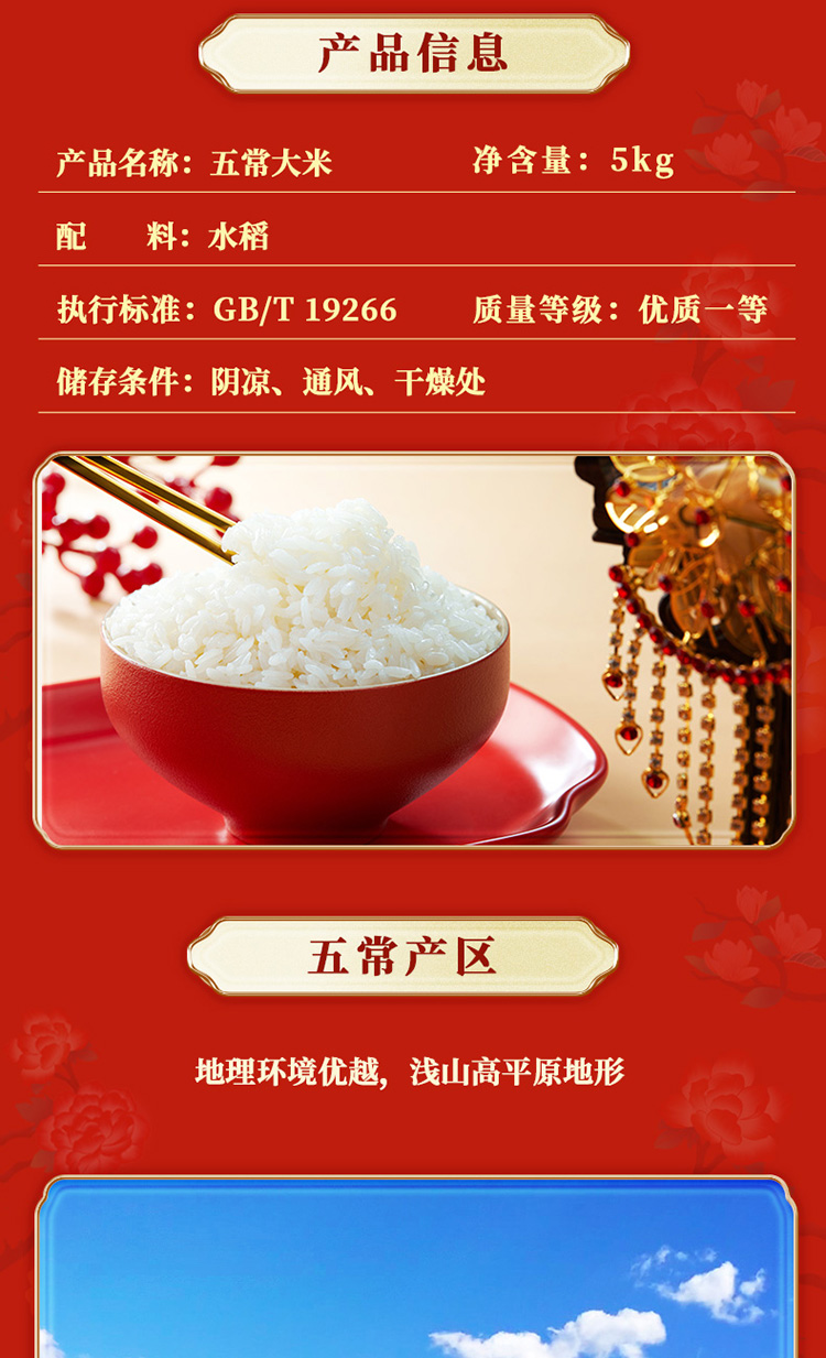 金福乔府大院 红五常大米5kg 10斤/袋 乔府醇香红金系列 东北米十斤真空包装