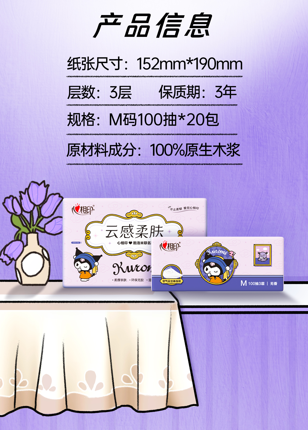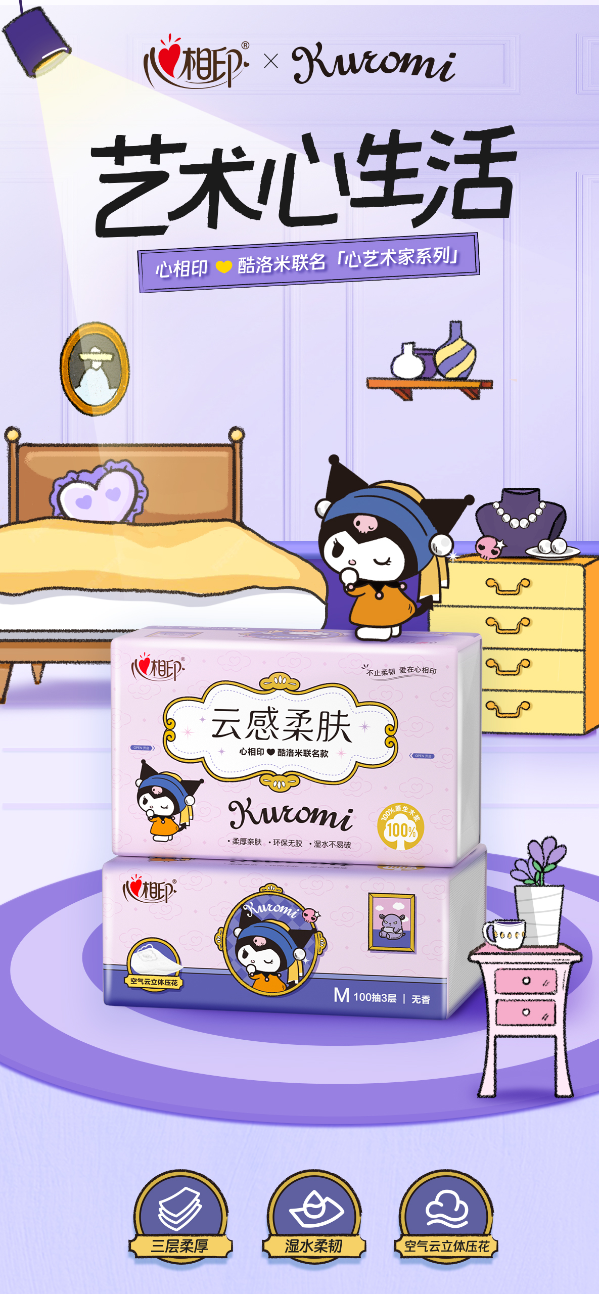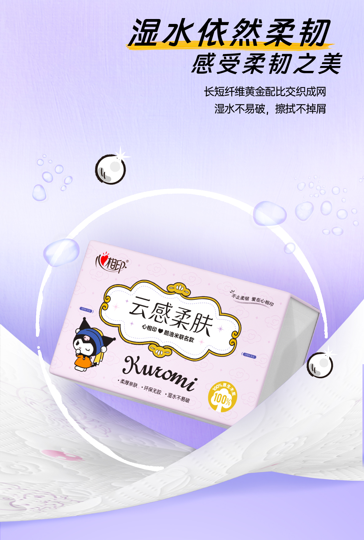 心相印云感100抽20包三层立体压花塑装面巾纸(IP印花)DT18100(箱装)A0001656