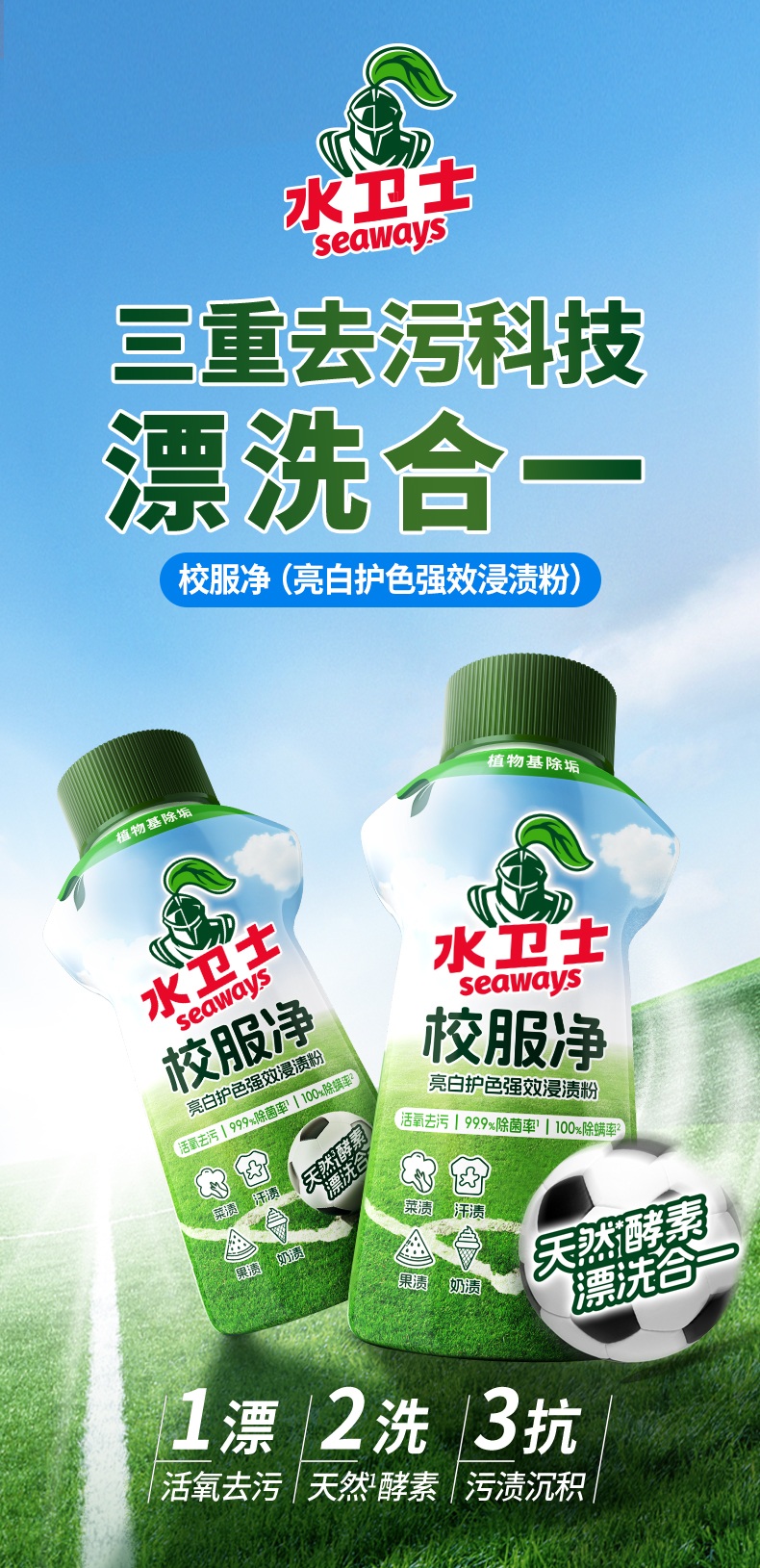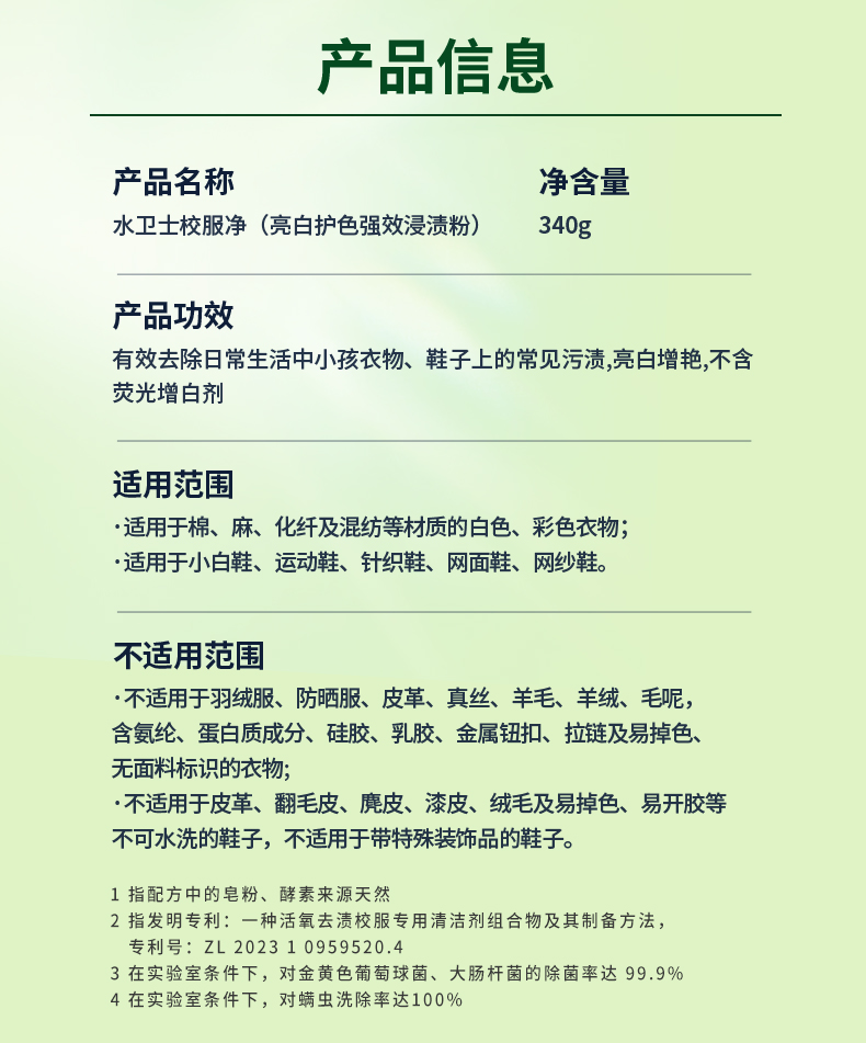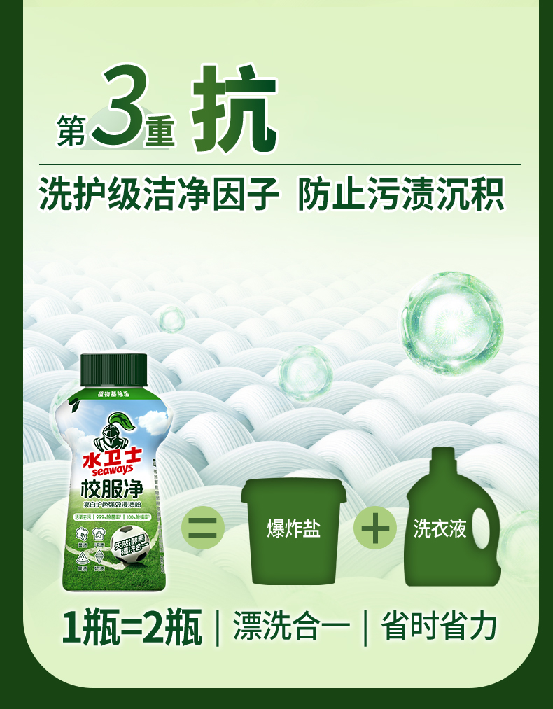 水卫士校服净340g/瓶 洗衣爆炸盐彩漂增白衣服去黄除菌去污渍
