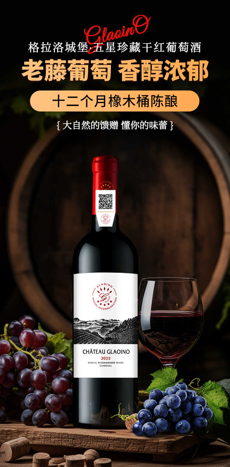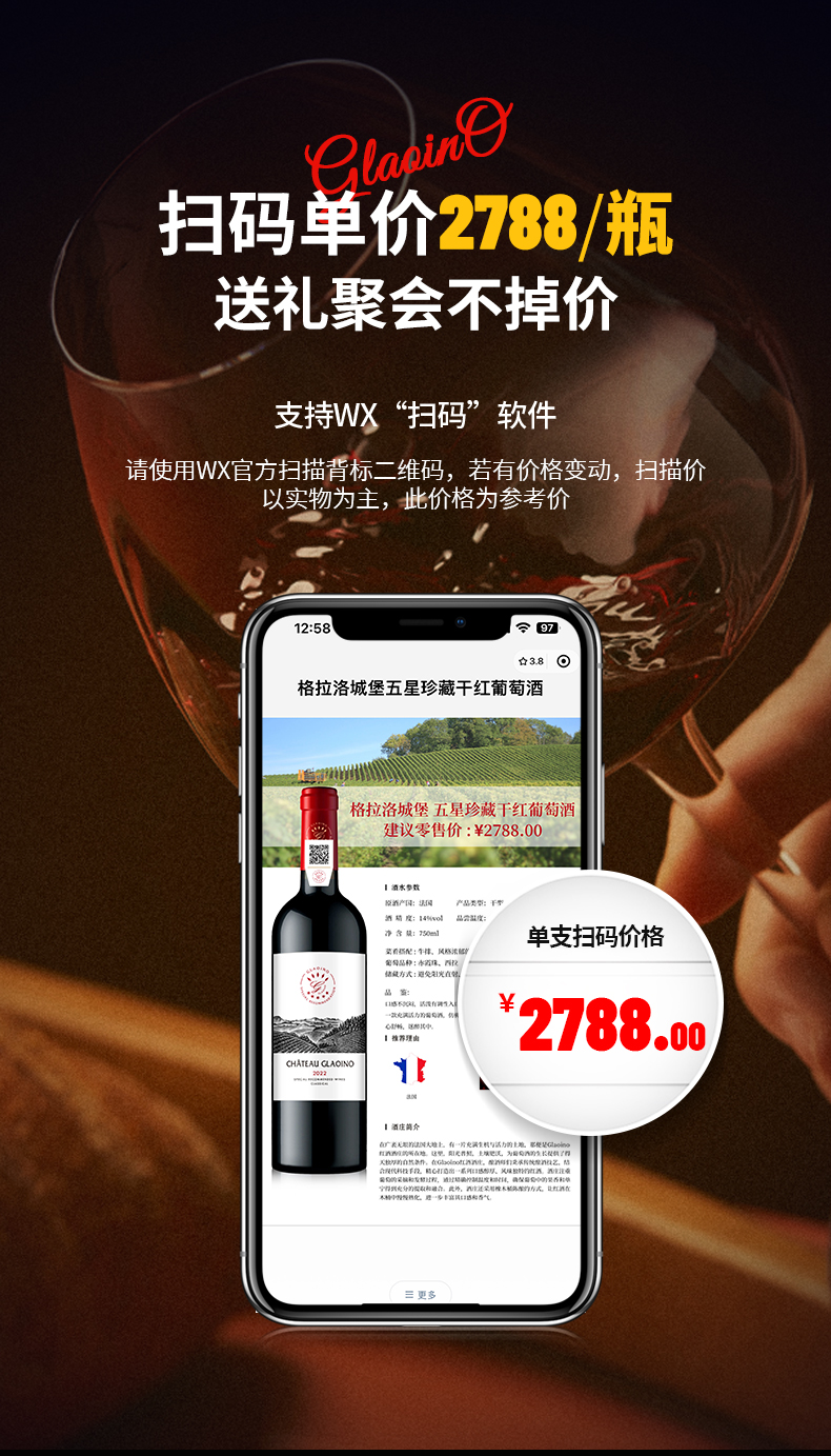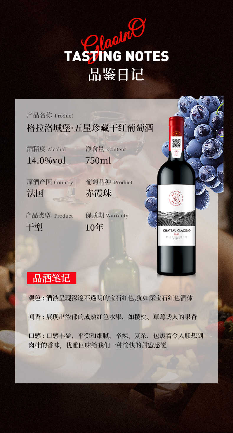 法国进口格拉洛城堡·五星珍藏干红葡萄酒【750ml*2瓶+精美木盒】