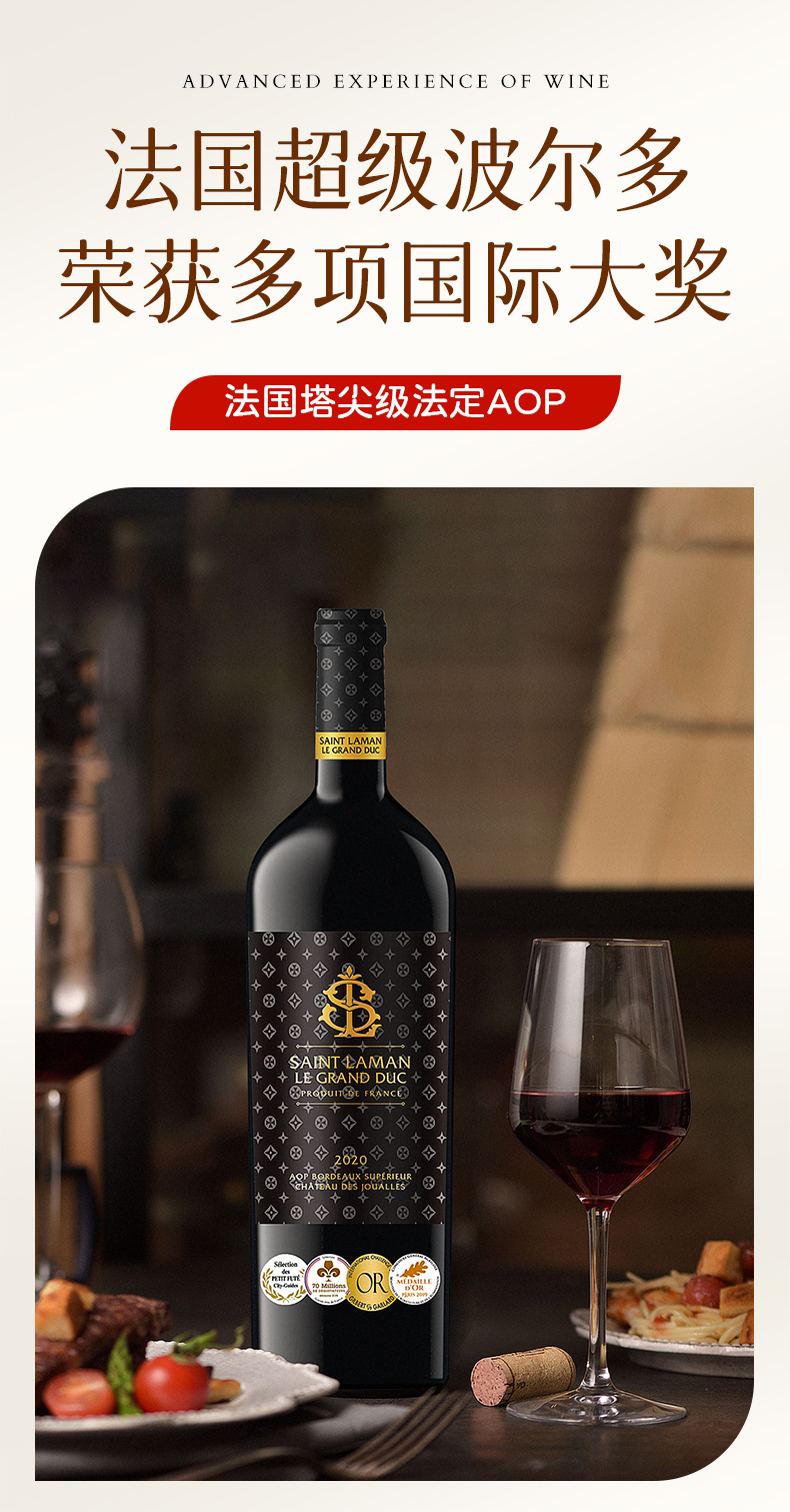 法国原瓶进口 超级波尔多 百年城堡酒庄 庄主自酿 AOP等级 圣拉曼大公爵干红葡萄酒750ml*6瓶