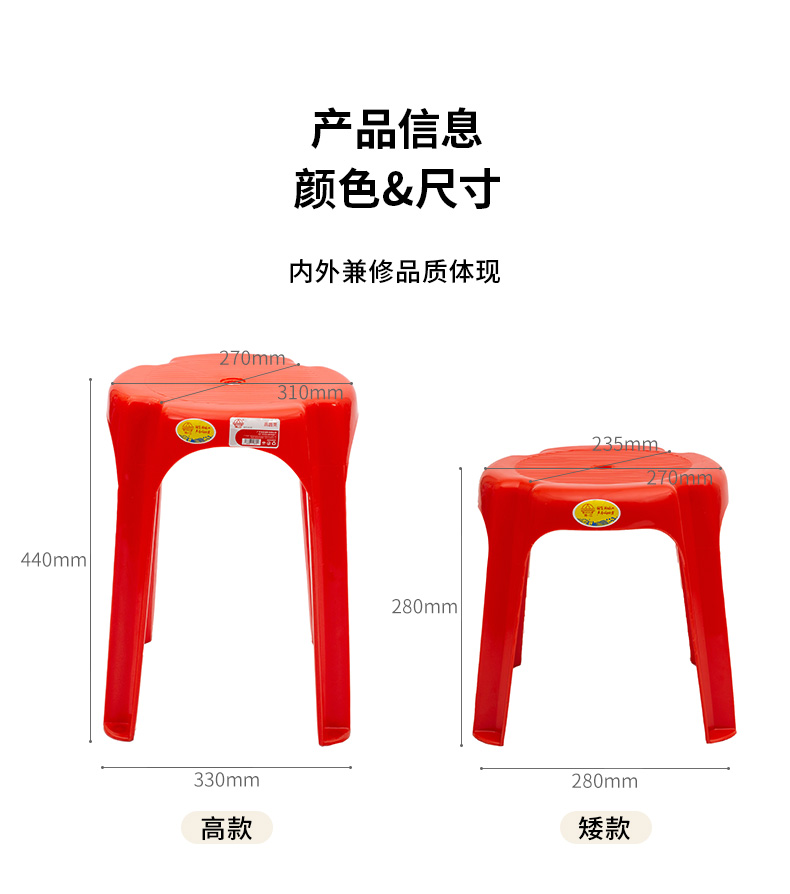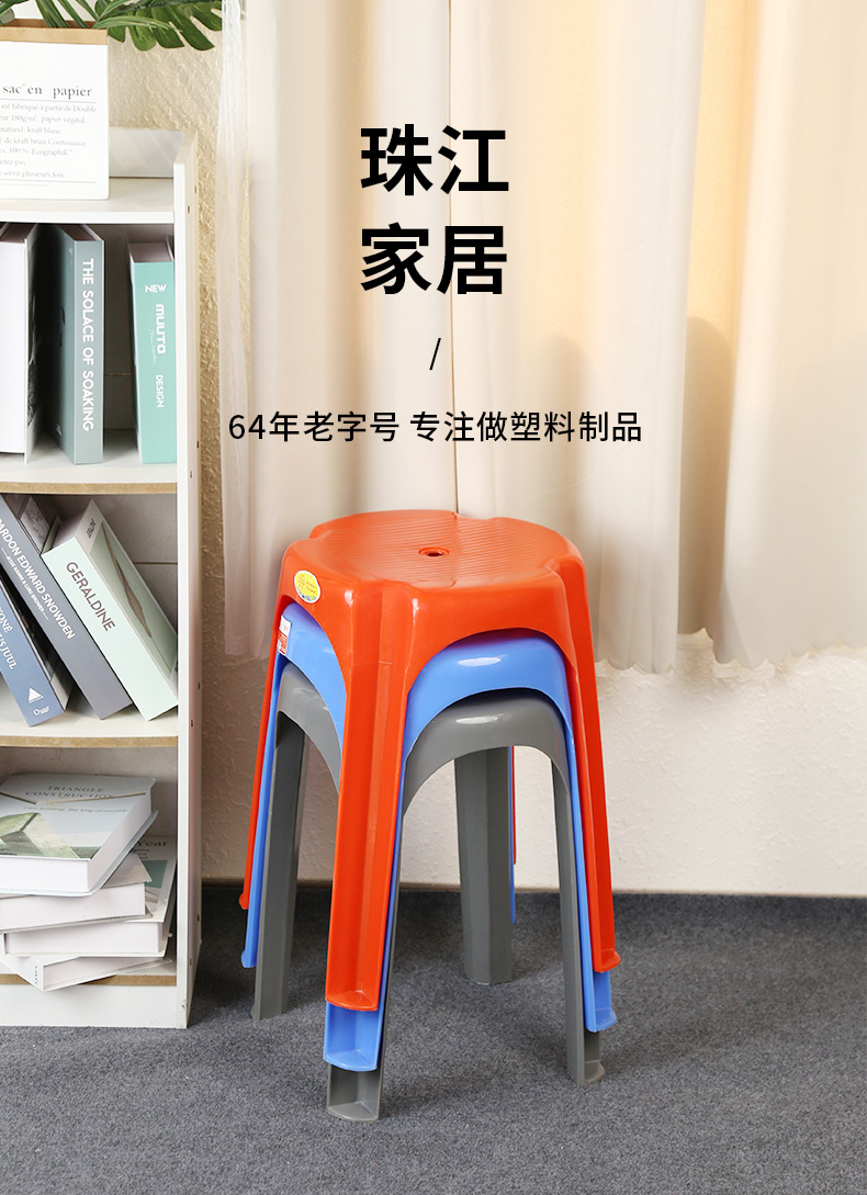 珠江牌塑料凳子餐桌凳高圆凳家用加厚板凳大排档凳子耐用可叠放