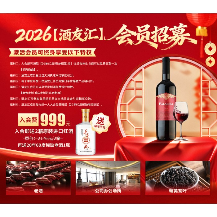 【酒友汇会员】入会即送智利帕拉雷亚干红葡萄酒 750ml 六支装*2箱