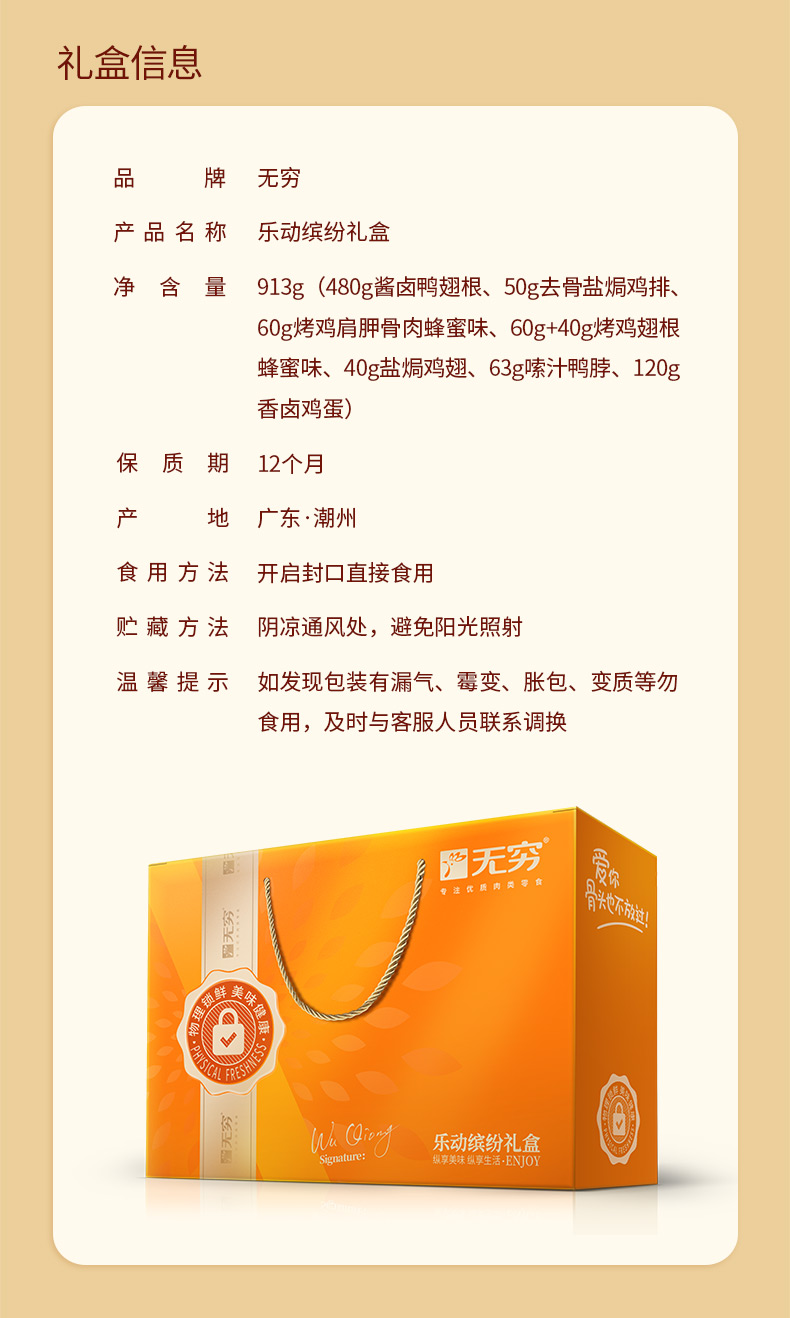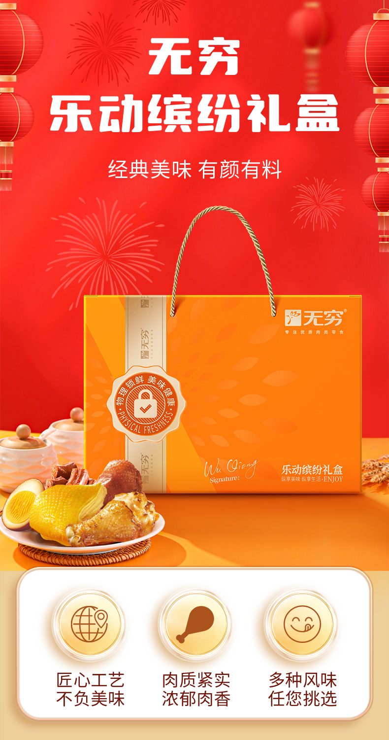 【无穷】913g乐动缤纷礼盒 卤味肉类礼盒零食年货礼盒