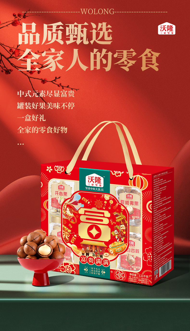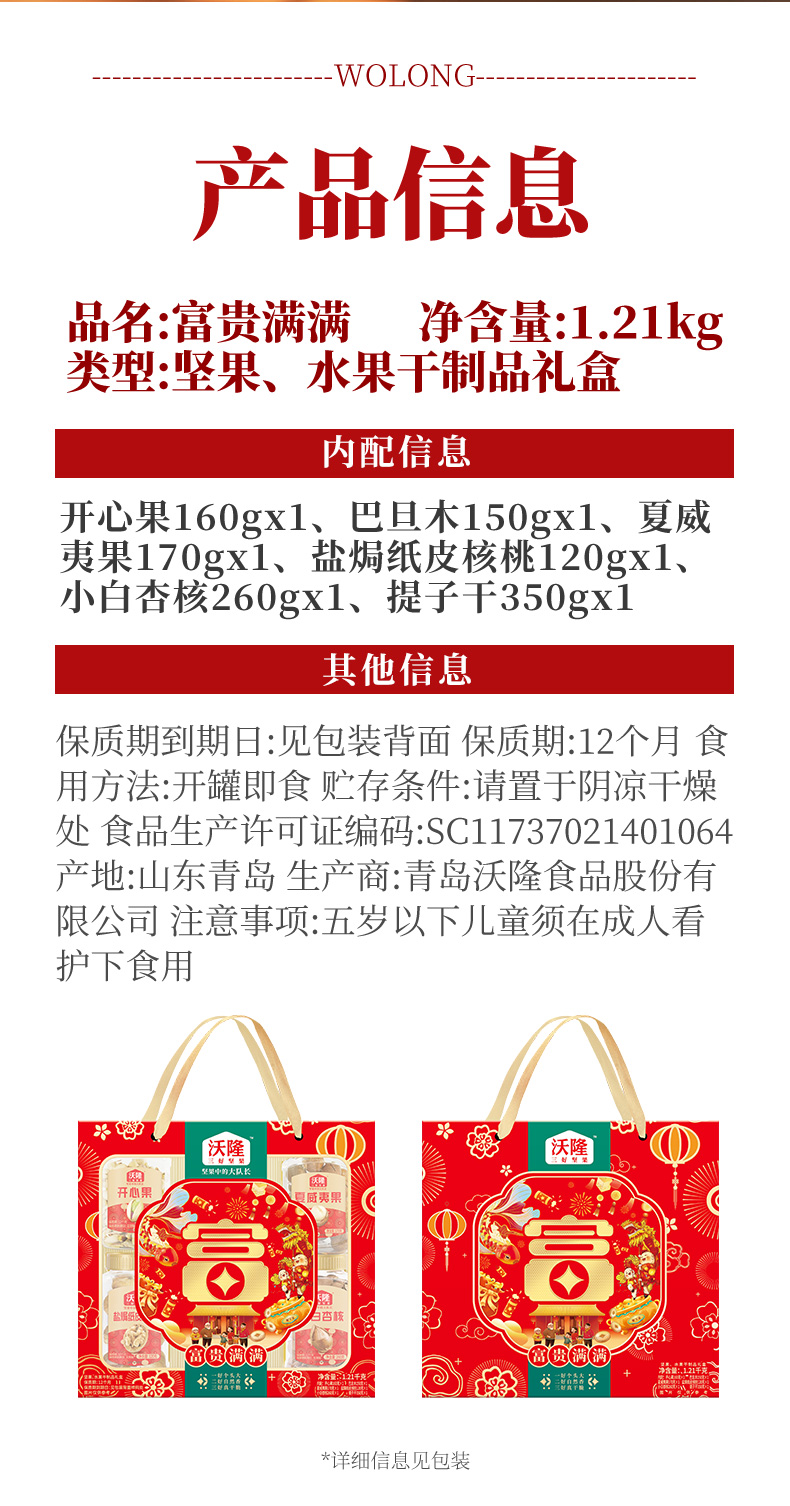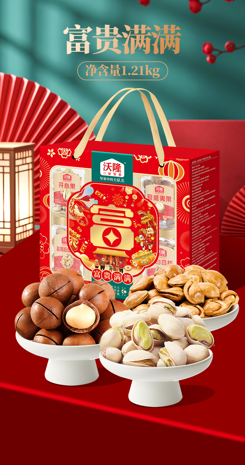 沃隆富贵满满1.21kg 零食坚果礼盒年货礼盒