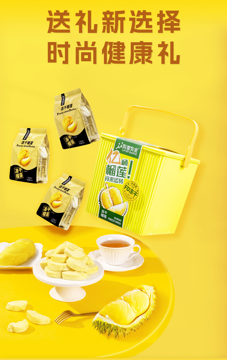 有零有食-334g亿桶榴莲(9袋冻干水果收纳桶装)*黄桶 冻干果干零食桶