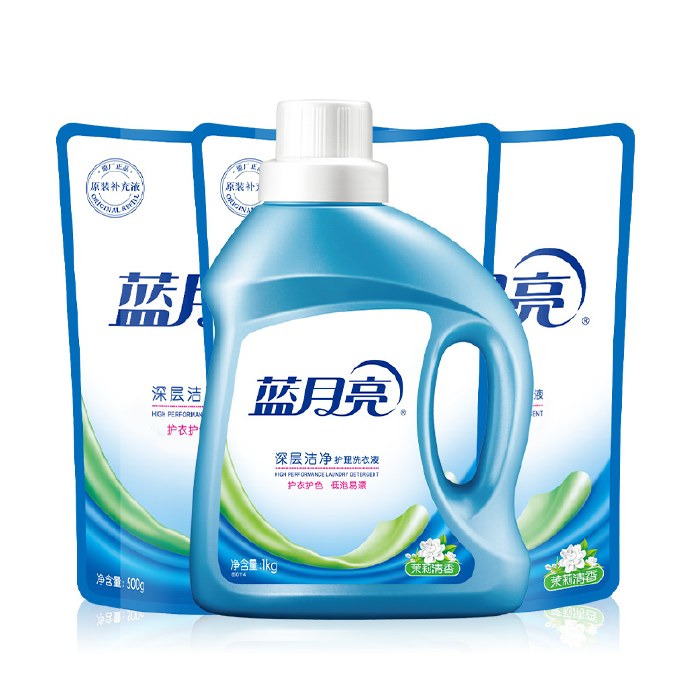 蓝月亮茉莉清香洁净洗衣液1kg+茉莉清香洁净洗衣液袋装500g*3