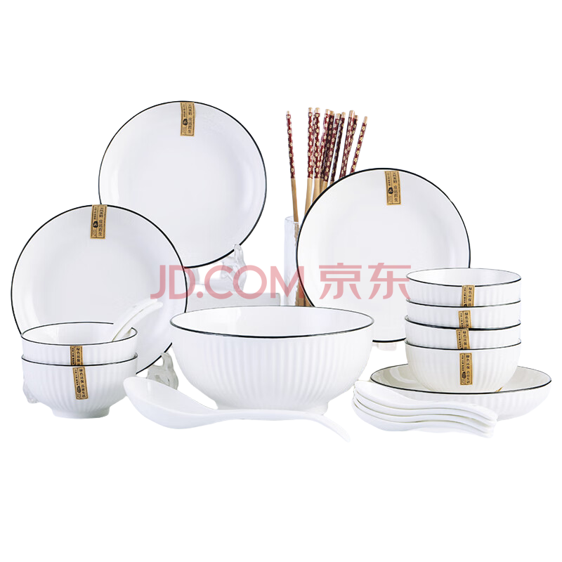 浩雅釉下彩景德镇家碗碟套装陶瓷餐具碗盘筷勺组合山田竖纹24头