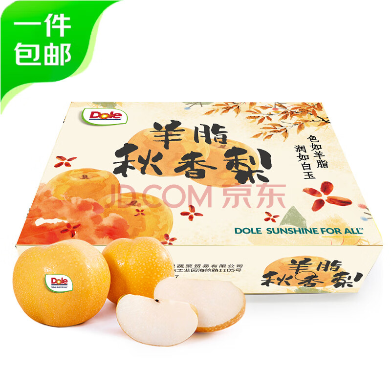 都乐Dole 羊脂秋香梨3.2斤礼盒装 单果300g 生鲜水果 源头直发 包邮