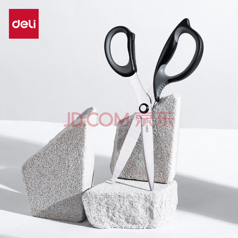 得力(deli)175mm人机造型办公剪刀 手工剪纸刀 中号生活家用剪子 黑色77759