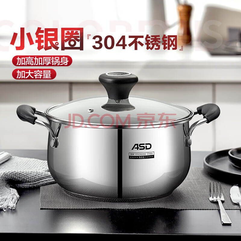 爱仕达(ASD)汤锅304不锈钢蒸汤锅 炖煮锅复底小汤锅22CM燃气电磁炉通用奶锅B1