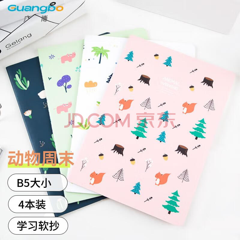 广博(GuangBo)B5笔记本子文具软抄本 卡通缝线学生记事本 动物周末 40张4本装 FB62100