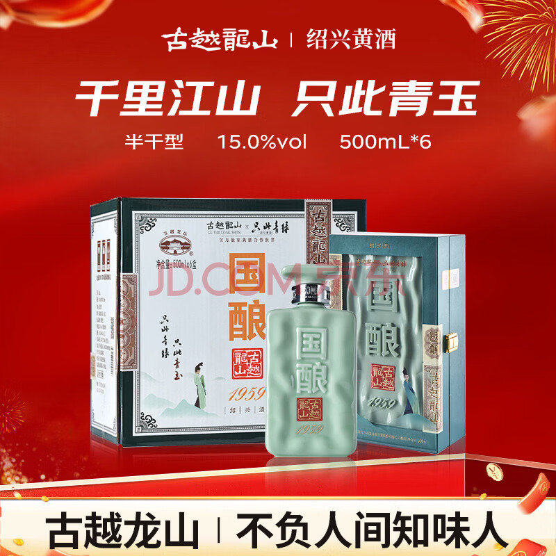 古越龙山 国酿青玉二十年 半干型 绍兴黄酒 500ml*6瓶 整箱装 年货送礼