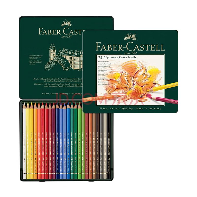辉柏嘉(Faber-castell)进口绿盒油性彩铅24色专业手绘艺术家大师级绘画绿铁盒彩色铅笔110024【梵高认证】开学礼物